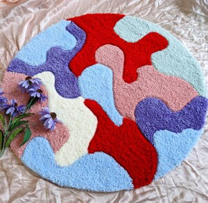 Een spiegel hoeft niet per se recht te zijn; hij kan ook organische, speelse vormen aannemen. Net als de kleuren en patronen van de getufte omranding, die mogen juist lekker creatief en onverwacht zijn!